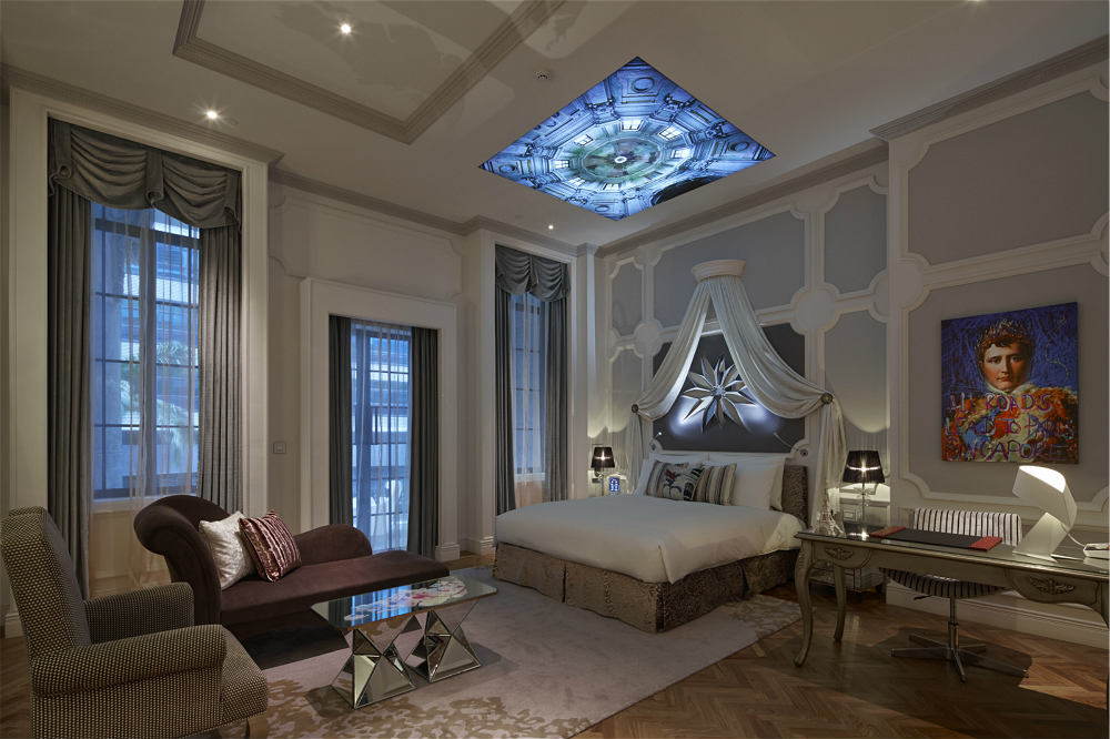 如今82岁的Karl Lagerfeld依旧经历无限。过去的几年中,他除了在Chanel和Fendi主持大局外,还为不少建筑做过设计。摩纳哥蒙特卡罗大都会酒店内的泳池、露台和花园,以及巴黎克里雍大饭店的两套奢华套房就出自他手。此外,索菲特开在新加坡的Sofitel So Singapore徽章也是由他设计的。
