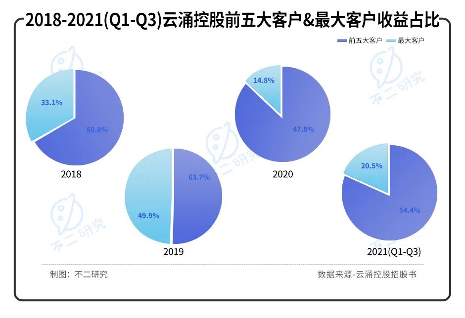 值得注意的是,其中来自前五大客户的收益分别占总收益约50.8%、63.7%、47.8%和54.4%。其中最大客户分别占总收益约 33.1%、49.9%、14.8%及20.5%。
