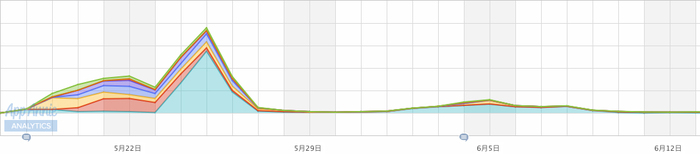 这张《滚滚龟》的“销售心电图”显示,左侧最高点的突起山丘,是《滚滚龟》上架的第1周,被苹果官方推荐的下载状况;右边趋近于需要做“心肺复苏”的状态,则是苹果官方推荐结束后的下载情况;有微微的拉出一个小小的,称不上是山丘的平缓斜坡,则是因为获得了gamesalad的5月份最佳游戏game of the month,降价60元新台币(人民币12元)促销的状态。