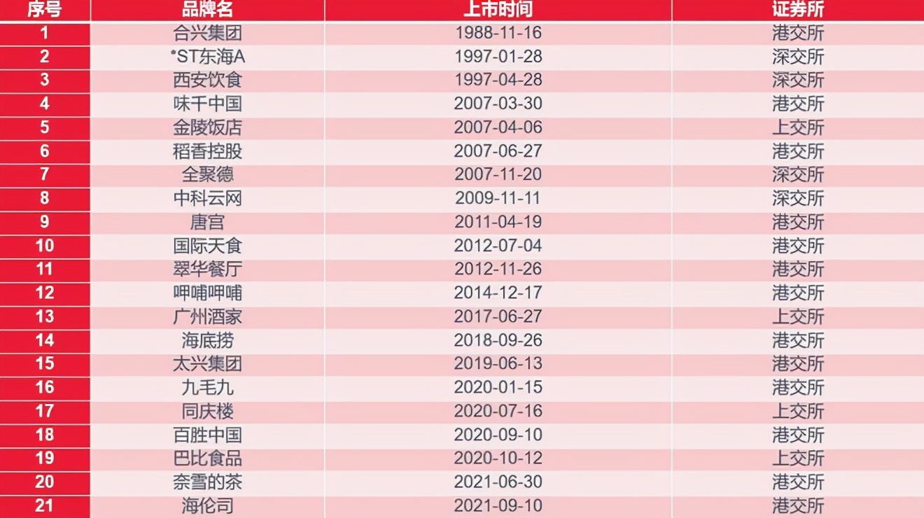早在1988年,港交所就有餐企通过了IPO,发展至今,中国已有21家餐企登陆资本市场。