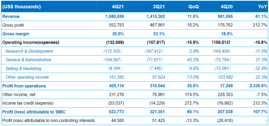 中芯国际(688981.SH; 00981.HK)也表示,2021年所有指标都在向好发展,收入大幅提升,毛利率达到35%,同比增加17个百分点,同时产能利用率很高,甚至有的季度产能稼动率都超过了100%。