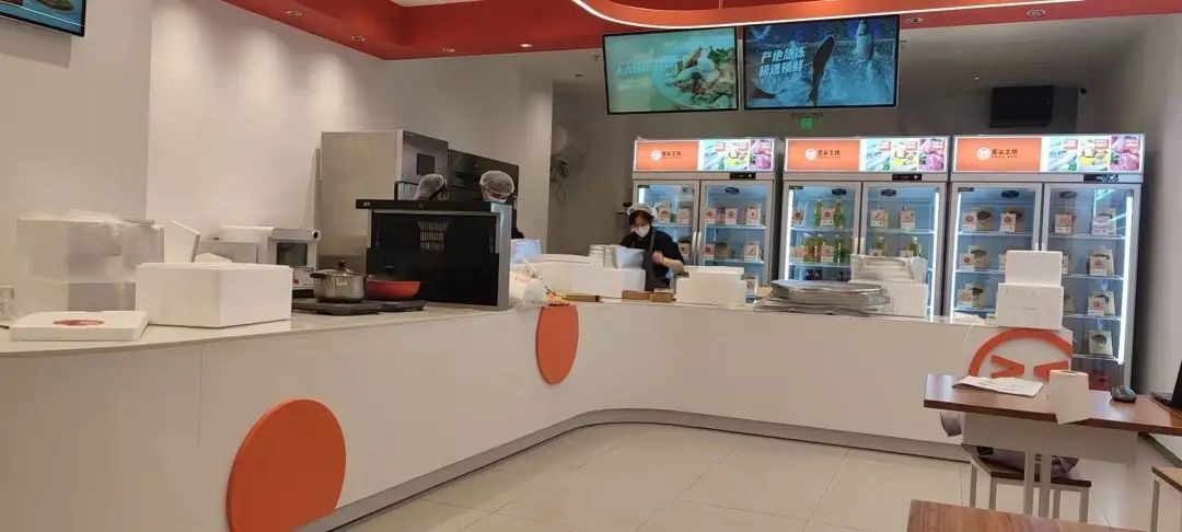 舌尖英雄目前仅有App一个下单渠道。虽然门店内的冷柜展示了部分预制菜,但店内用户无法直接购买,必须通过App下单。消费者下单后,店员会在后厨现场制作,但并不对外展示制作过程。