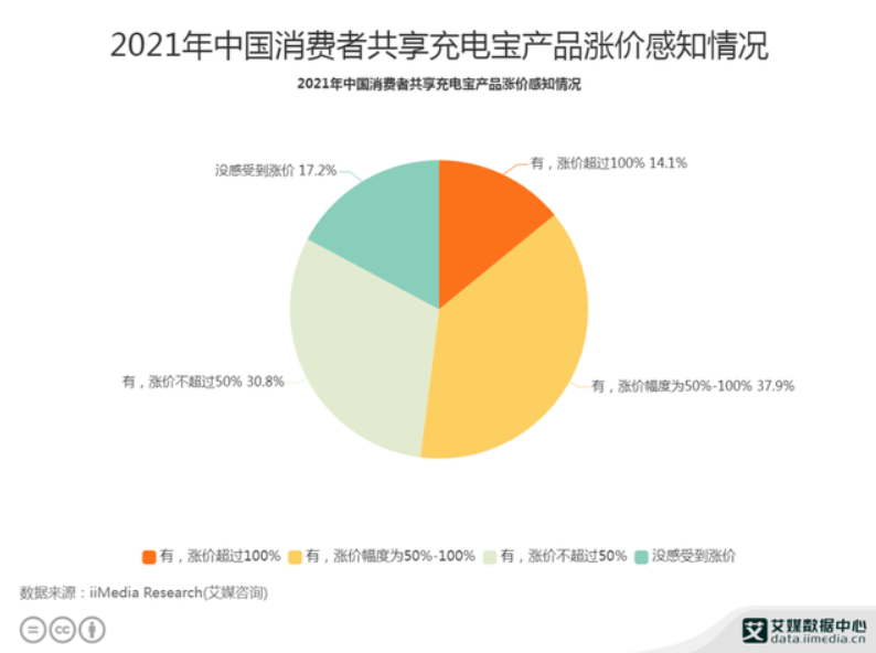 早在去年开年,共享充电宝涨价潮曾经引发业内热议,艾媒咨询数据显示,2021年,约有14%的人感觉共享充电宝涨幅超过100%,约38%的人则认为涨幅在50%-100%之间。