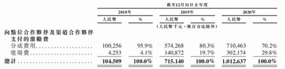 根据小电科技招股书,小电科技的激励费从2018年的1.05亿元增长至2020年的10.13亿元。分成费率从24.2%增长至38.2%,而进场费率则从1%增长至16.3%。
