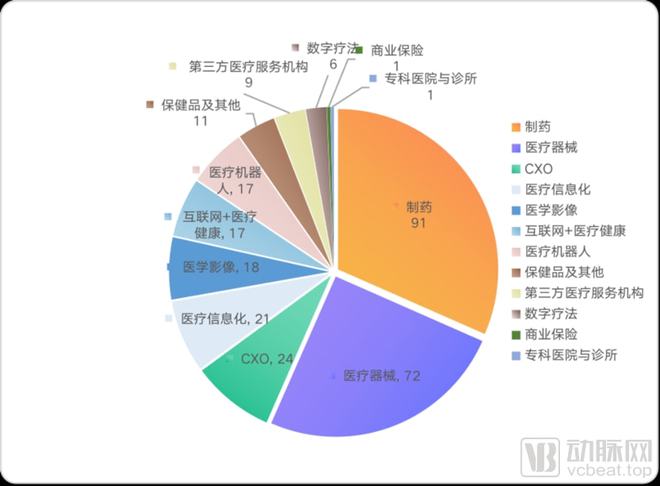 2021年产业资本医疗健康投资细分赛道分布图,动脉网制图