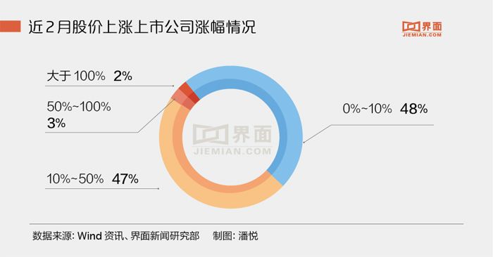 界面新闻注意到涨幅超过50%的70家上市公司中有32家是2016年以来上市的新股或2015年12月份上市的次新股,将这些上市公司剔除后,剩下的38家上市公司中,近2个月以来涨幅位居前十的如下图表所示: