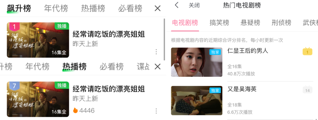 爱奇艺这次敢头号位推荐《漂亮姐姐》,足见对剧集品质的信心。该剧上线两天,不负众望登上爱奇艺站内“电视剧飙升榜”第1名,并以4446的播映热度来到了爱奇艺“电视剧热播榜”的第7名。