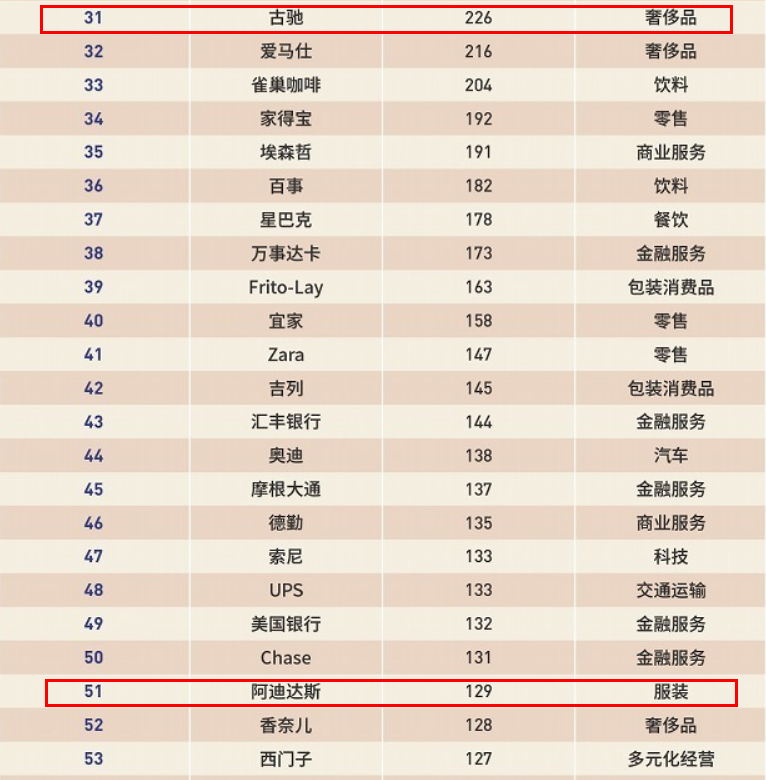 其实,如果你仔细研究福布斯的品牌价值排名就不难发现,尽管都是世界知名大牌,但Gucci 们上榜或许更多依靠的是高品牌感知价值带来的高溢价,而Adidas们则更加依靠业务量。