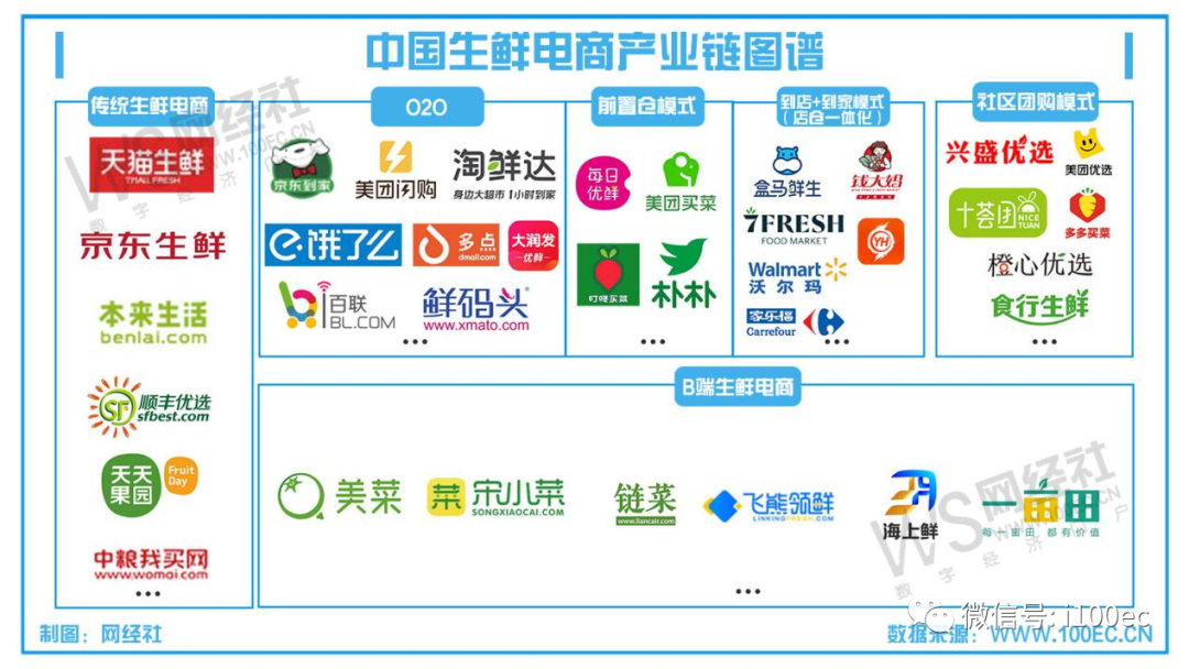 4、到店+到家模式(店仓一体化):盒马鲜生、7Fresh、永辉生活、沃尔玛等;