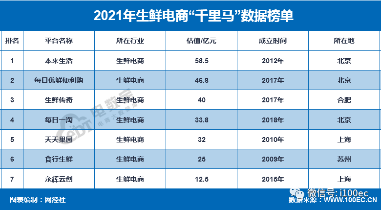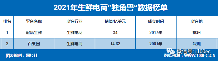 四、2021年生鲜电商“独角兽”2家 千里马7家