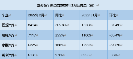 3月1日,蔚来、小鹏、理想、哪吒等纷纷发布2022年2月交付数据,虽然均实现了同比增长,但也在一些表现上出现了一定下滑。简单概括为:理想汽车暂时领跑,小鹏汽车环比下降最为明显,蔚来汽车同比增速掉队。