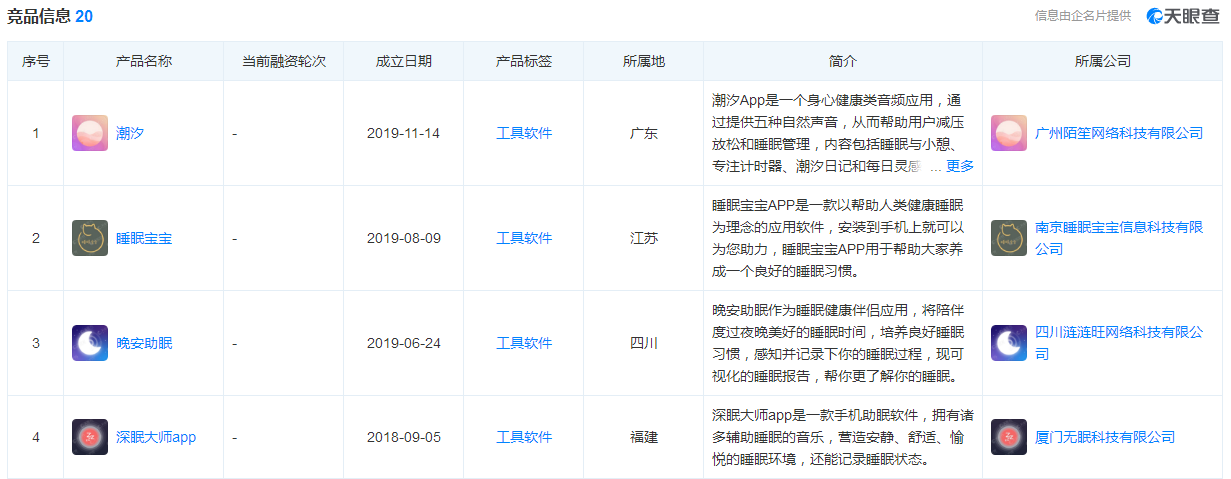 部分蜗牛睡眠app竞品信息 截图来自天眼查
