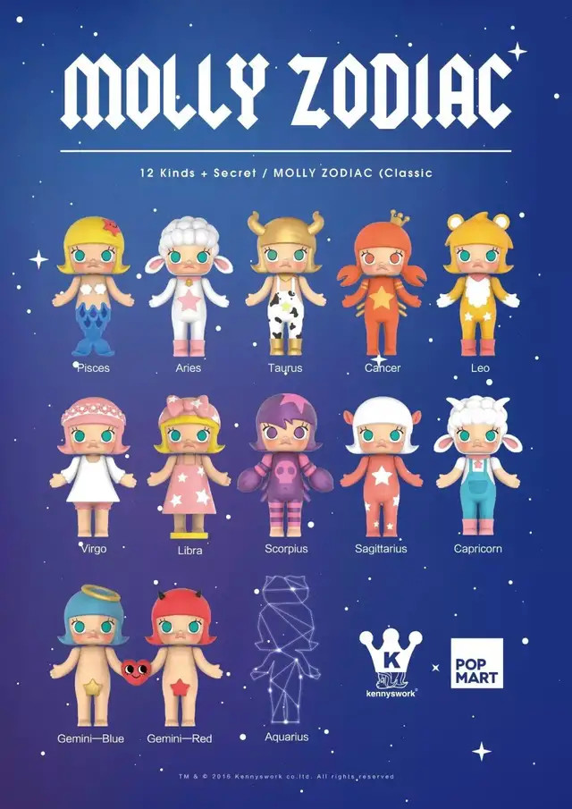 2016年7月,Molly的首款星座系列盲盒在泡泡玛特天猫旗舰店开售,4秒钟200套被抢购一空。很快,盲盒大火,抖音up主每天花一两千块开盲盒,二手交易市场上,隐藏款盲盒可以被卖出几十倍的价格。Molly也成为潮玩市场最当红的形象IP。「潮玩」一词也开始从设计师玩具或艺术家玩具,扩大到「给成年人的玩具」被市场接受。