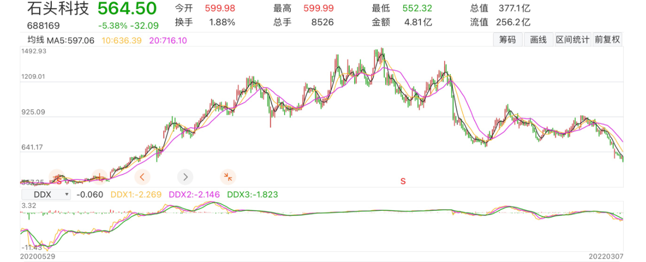 截至3月7日,石头科技报收564.50元/股,并在盘中再度刷新52周最低价,低至552.32元/股,已逐步回归到2020年暴涨初期水平。
