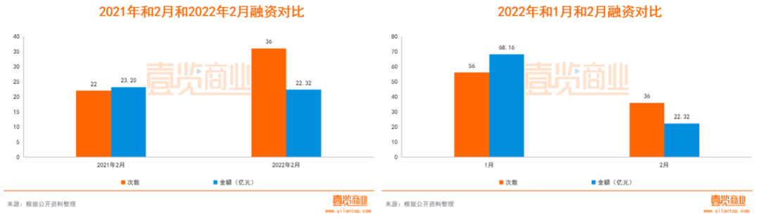 整体来看,2月无论是融资数量还是融资金额都呈现大幅下滑。回顾往期数据,我们发现,每年2月份的融资数据都普遍偏低,这或许是因为在春节期间,各行各业处于放假状态,一些项目还未启动投资,所以投资动态较少。