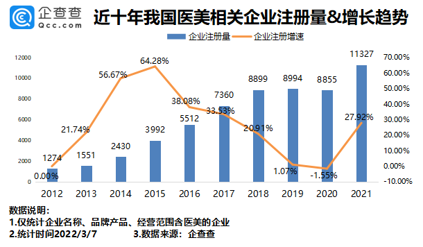 2021年医美相关企业新增1.13万家,同比增长27.92%