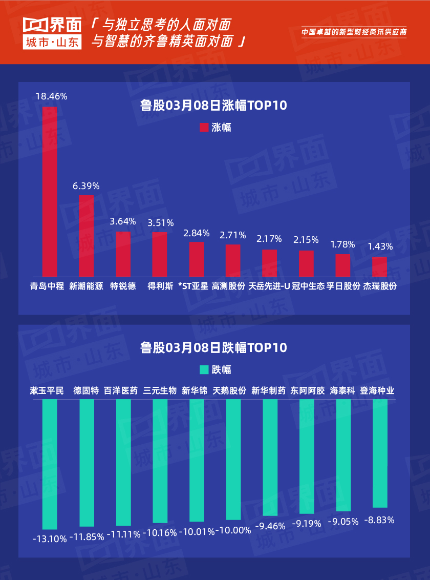 3月8日,山东17股上涨,245股下跌。