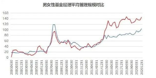 值得一提的是,2005年,女性基金经理的平均管理规模第一次超过男性基金经理;2012年,女性基金经理正式超越男性基金经理的平均管理规模,该记录一直保持至今。