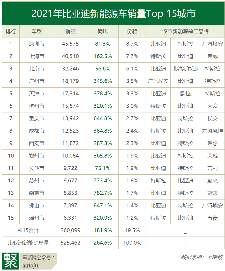 比亚迪主销哪些城市?上险数显示,2021年比亚迪热销前三城市依次是:深圳、上海和北京。深圳是总部,上海和北京则受限行、限购政策影响。