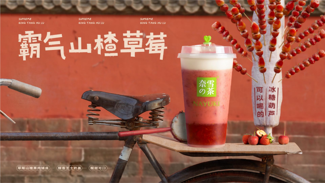 奈雪的茶用霸气草莓、霸气葡萄、霸气橙子的“霸气”系列打开市场,去年冬天,在霸气草莓的基础上推出霸气芝士山楂草莓,即冰糖葫芦款,创造话题。3月到来,奈雪在旧产品的故事上再创作,推出霸气樱花楂楂莓,樱花季的故事,又有了。“霸气”系列的爆品,往浓郁方向有“霸气芝士”系列,往清淡方向又延申出“轻松”系列。如此一来,在同一款产品上,奈雪延伸出多款具有竞争力的产品。