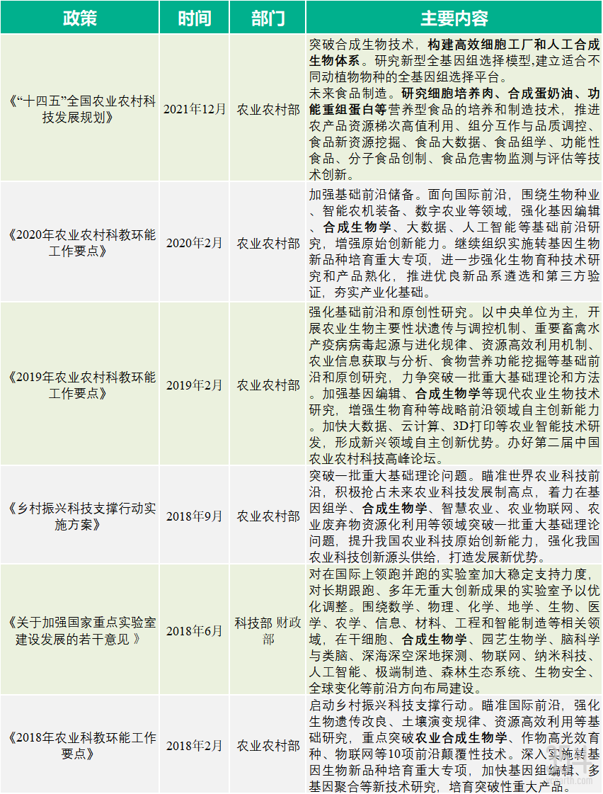 一、合成生物学:重点专项启动晚、发展快,农业食品方向也备受宠爱