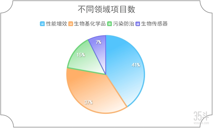 “合成生物学”专题中不同领域涉农项目数 数据来源:公开网站,35斗整理