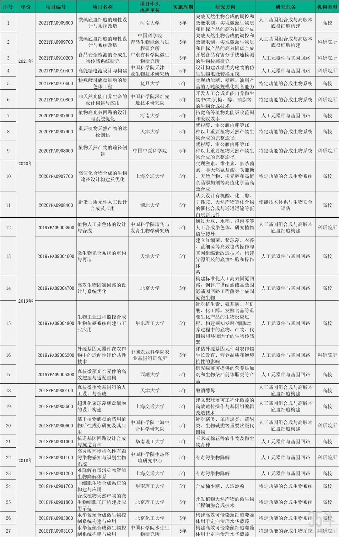 附:2018-2021年“合成生物学”重点项目涉农项目