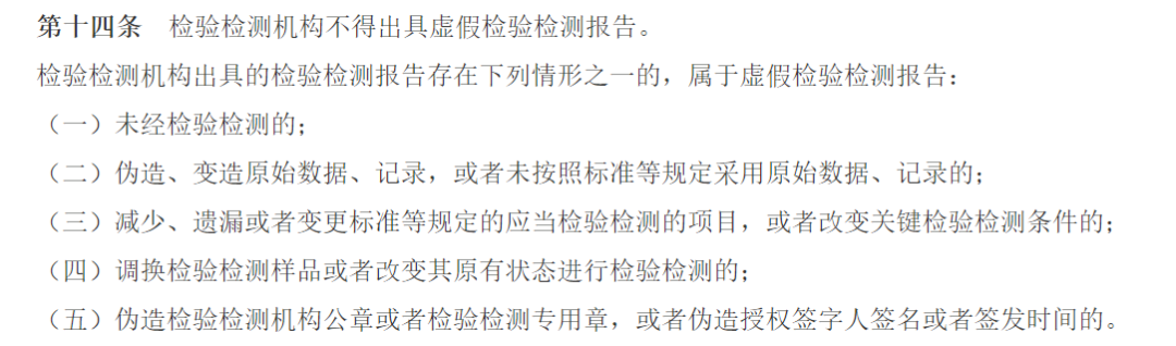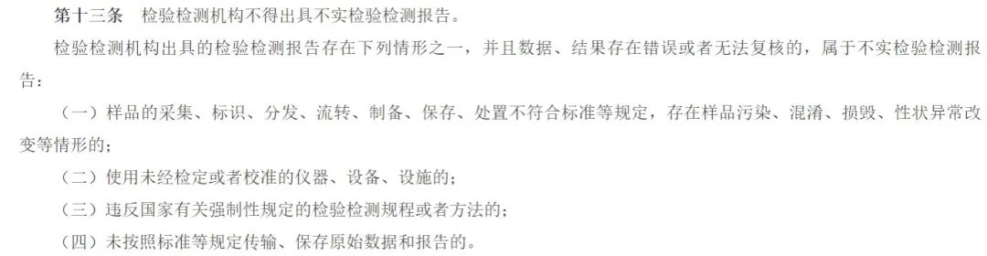 而按照《办法》第十三条中的相关规定,上述这几类现象均属于不实检验检测报告类型。