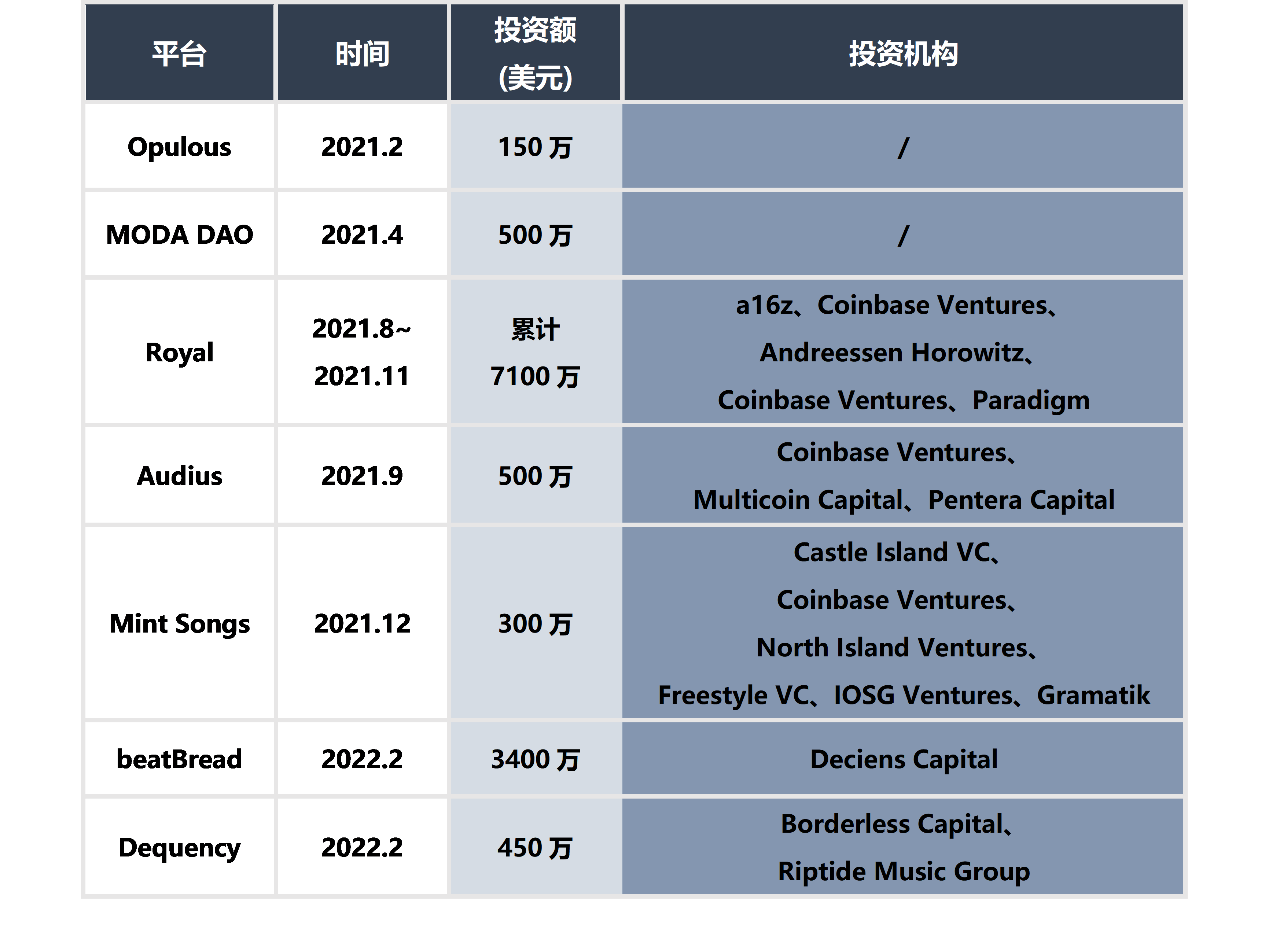 近一年Web3音乐平台融资情况(不完全统计)
