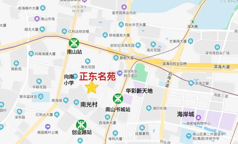 项目位于海德二道、南光商业街交汇处,与11号线南山站、9号线南山书城站的直线距离都只有500米,步行时间约7-8分钟,距离12号线南光站(今年通车)也是10分钟步程。