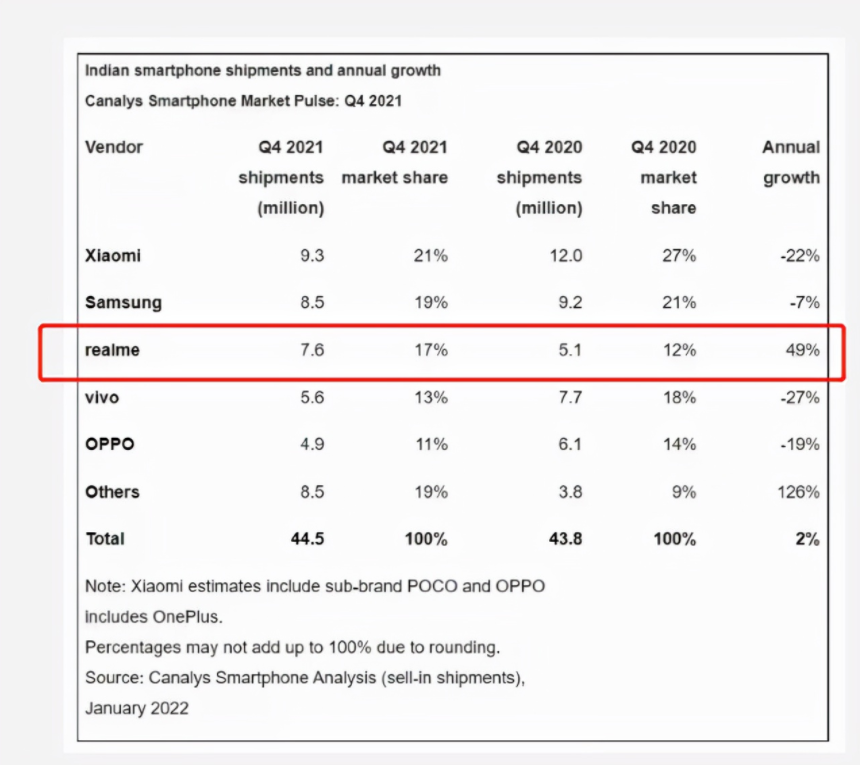 就影响力而言,realme显然是比不上小米等率先进入市场的品牌,但realme的优势在于专注中低端,且兼顾时尚感,更有针对性,能在细分领域挖掘出更多潜在需求,这也是realme能在短短三年时间内将印度市场的市占率提升至17%的重要原因。