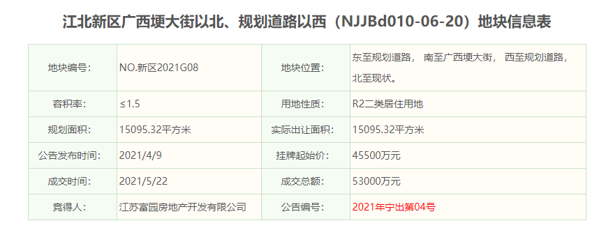 去年11月,国际健康城G22地块经过4轮竞拍,最终被通宇拿下,成交价为7.65亿元,楼面地价20266元/㎡,毛坯销售限价32000元/㎡。