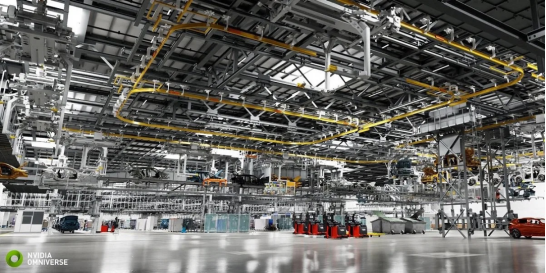 (宝马虚拟工厂,图片来源:英伟达Omniverse平台截图)