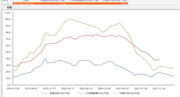 东方财富choice软件呈现的猪肉价格走势显示,生猪出场价、二元母猪销售价、仔猪平均价自2019年起-2020年呈现出单边上涨趋势。在2020年-2021年一季度,猪肉价格则在高位横盘。自2021年一季度后,整体猪肉价格又呈现出断崖式跳水态势。