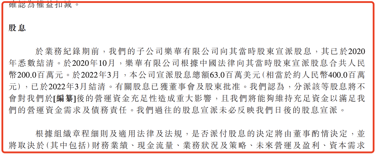 此外,乐华娱乐在招股书中披露,乐华娱乐子公司乐华有限公司曾在2020年10月向股东宣派股息2.0亿元。2022年3月,乐华娱乐在递交上市申请前再度派付股息4.0亿元。相比之下,乐华娱乐2021年的净利润则为3.35亿元。