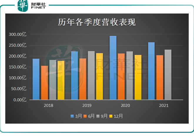 此外,从公司往年各季度经营数据表现中亦可看出,第一季度往往是公司实现营收最高的时候,便是在2020年第一季度便达到了292.57亿元。