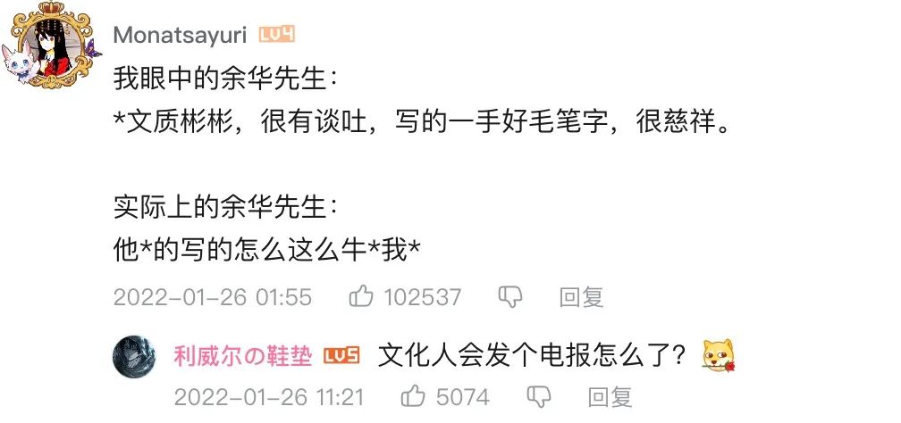 作家们人均幽默,这并不奇怪,岁月的沉淀和对语言艺术的精准把握赋予他们以故事和讲故事的技巧,奇怪的是网友们对这些段子孜孜不倦的兴趣,即使是没那么好笑的抱怨也听得津津有味,就连那些粗话在他们眼里都“眉清目秀”,这种喜爱仅仅来源于作家“滤镜”吗?