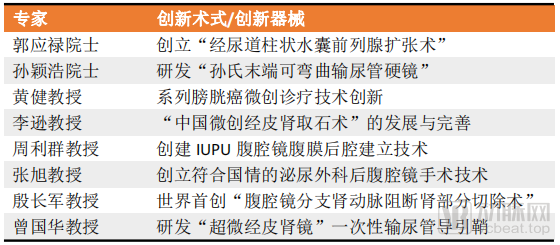 中国泌尿外科专家创新不完全统计 来源:网络公开信息整理