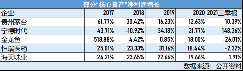以几只“茅”为例,除宁德时代净利润增长很大外,贵州茅台、恒瑞医药、海天味业都出现了颓势,其中金龙鱼更是处在上市后的“业绩变脸期”,净利润大幅下降。