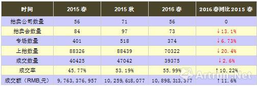 2016年春拍已进入尾声,就目前统计,这一季有超过80家拍卖公司共计举办500余个专场,超过50000件拍品成交,总成交额达179亿元,而“亿元高价”、“白手套”更是频频刷新朋友圈。