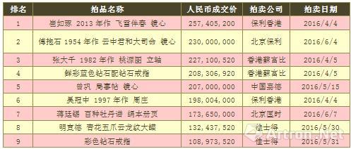 数据来源:雅昌艺术市场监测中心(AMMA),统计时间2016年6月17日