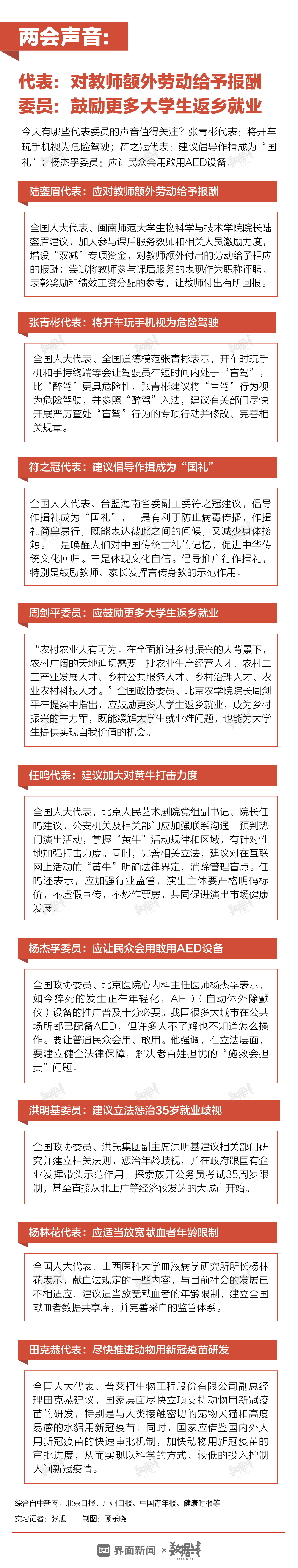 代表:对教师额外劳动给予报酬,委员:鼓励更多大学生返乡就业 | 两会声音
