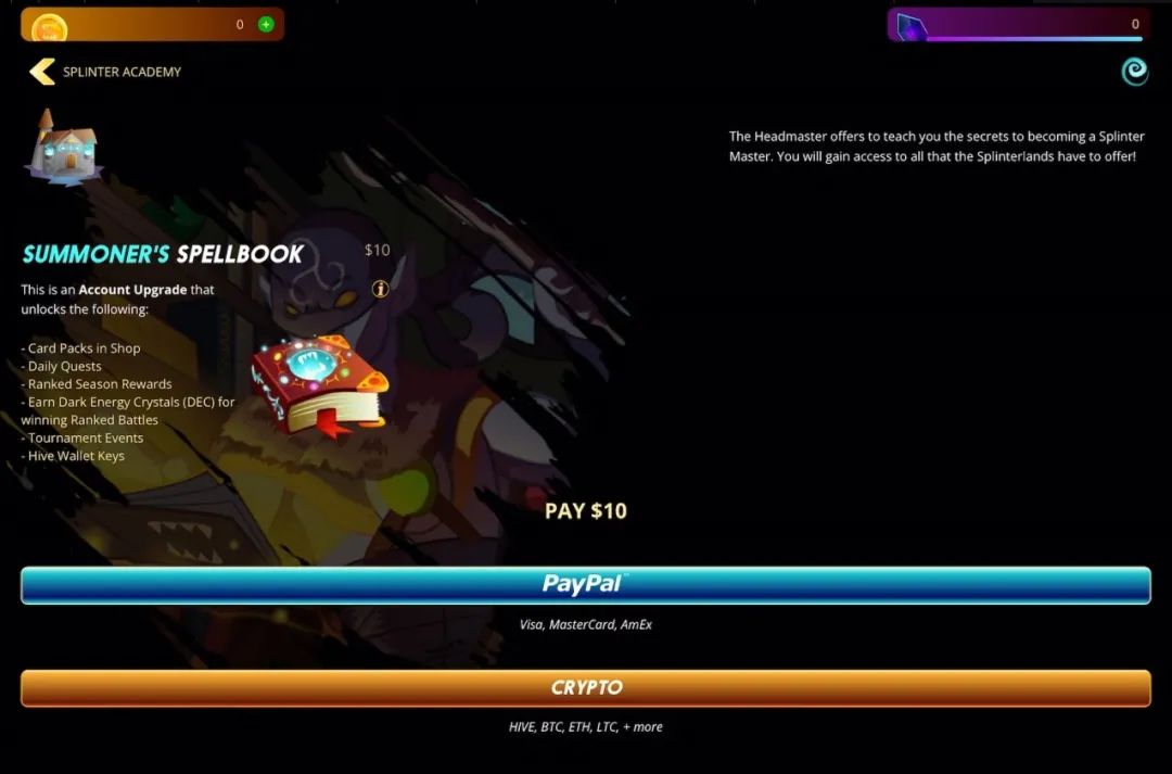 成立于2018年的Splinterlands经营着一款同名的奇幻主题卡牌类链游,玩家可以通过收集和组合卡牌与其他人展开竞技对战。与《Axie Infinity》类似,玩家首先需要花费10美元来购买召唤师的法术书作为正式进入游戏的入场券,而后玩家就可以通过交易卡牌、完成每日任务等方式来获取奖励,实现“边玩边赚”。