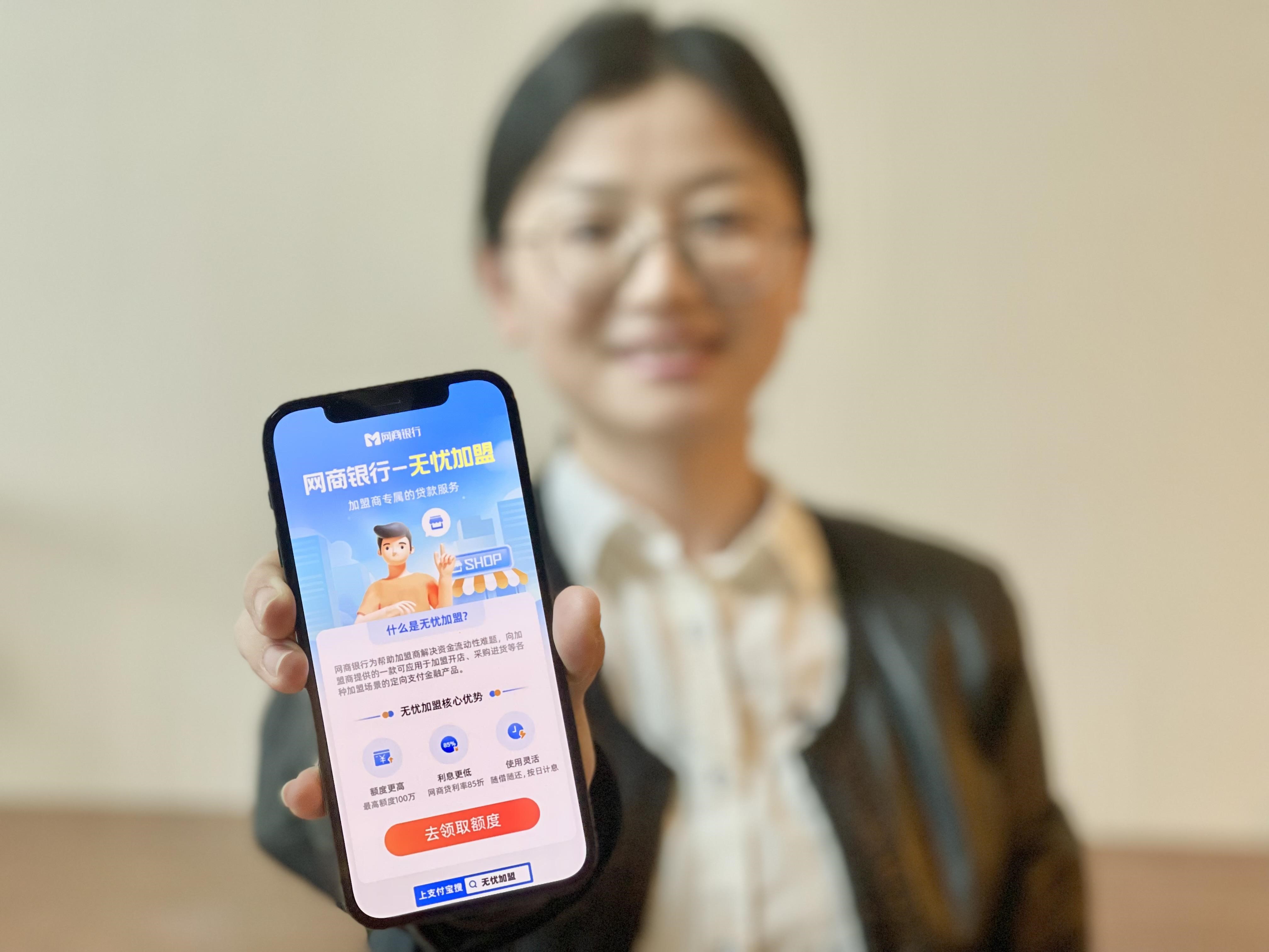 在“无忧加盟”行动中,品牌商通过引入网商银行,使得加盟商申请贷款的通过率达到80%,极大提升了贷款可得率。即日起至下月6日,合作品牌加盟商在支付宝搜索“无忧加盟”,还可享15天定向付款免息,降低自己的利息成本。