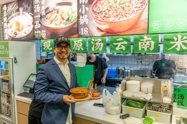 吴光辉是蒙自源米线上海区域的加盟商,两年时间里,他加盟了13家蒙自源米线,布局大大小小的商圈。在寸土寸金的上海,热门商圈租金高,对资金的需求量大,而他的十来间店铺都是租的,不能抵押,因此向银行贷款非常困难。