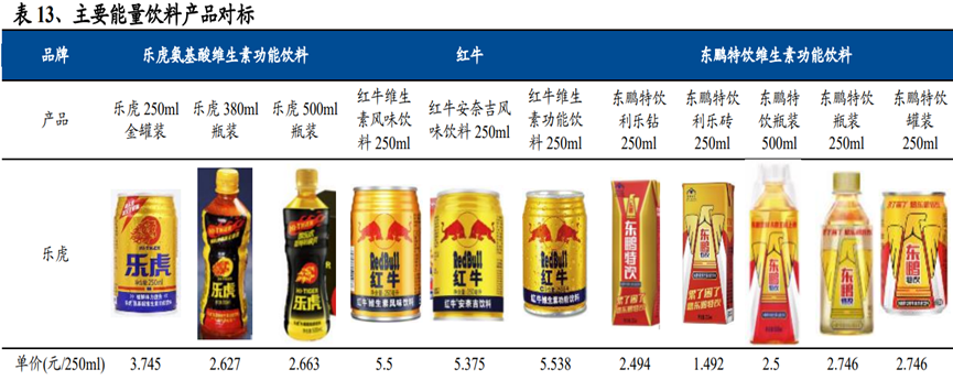至于为什么东鹏会拥有如此强大的“能量”?在东鹏特饮百度贴吧,一位货车司机发言一针见血:“累了困了,找便宜的喝。” 是的,与红牛主攻一二线城市白领策略不同,三四线及其它低线城市是东鹏主战场,货车司机、车间蓝领等中低收入群体是东鹏基本盘。 价格是最大优势之一。从兴业证券研究对比可以看出,东鹏价格是最低的,250ml利乐砖1.5元左右,500ml瓶装也比同规格乐虎便宜。