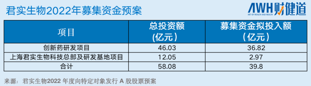 一位专注于上市公司财务审计的会计师对《财健道》表示,君实生物定增方案中写的不超过39.8亿元,并不能简单理解成君实拟募资近40亿元。
