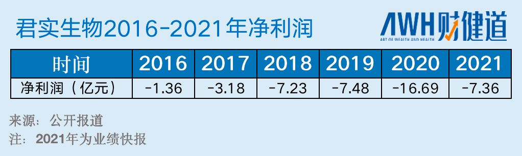 如果单单从营收来看,君实生物近5年来的确收不抵支,连年亏损,2021年业绩预告中的亏损幅度才相对收窄。