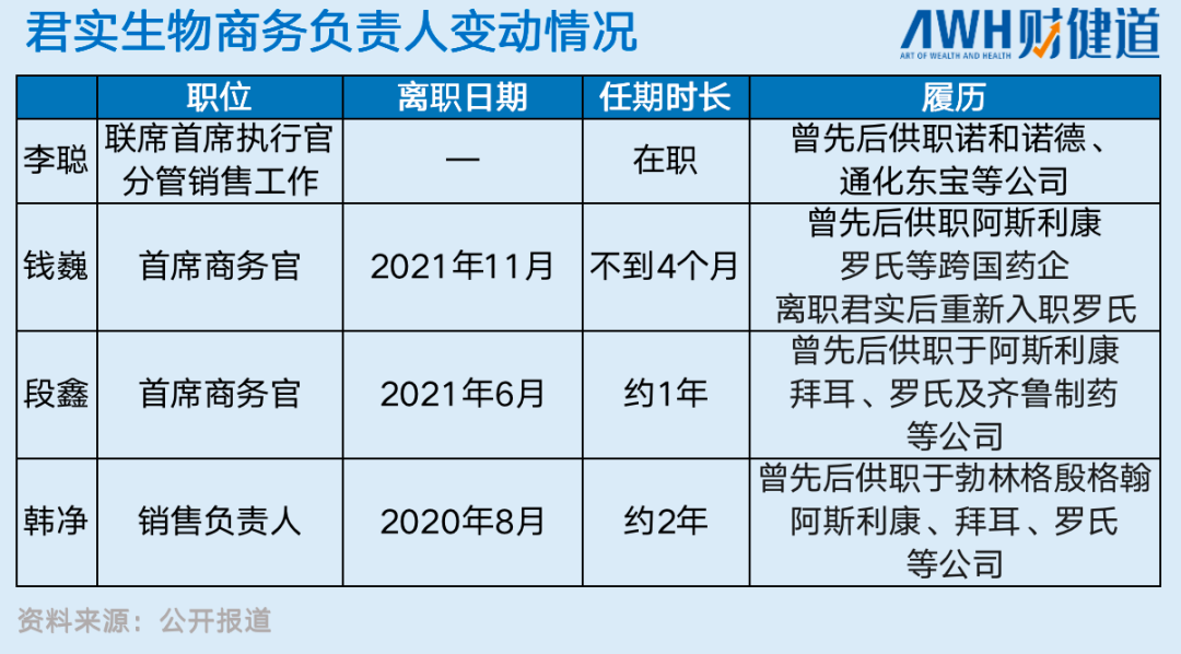 从特瑞普利单抗上市以来,君实生物已经经历了三轮商务负责人的更替,其中最短的一任在职时长不到4个月。