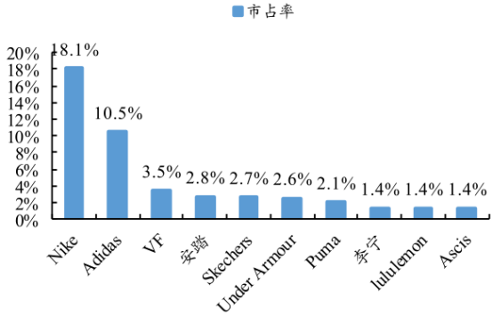 2020年全球运动鞋服市场占有率(数据源自国泰君安)